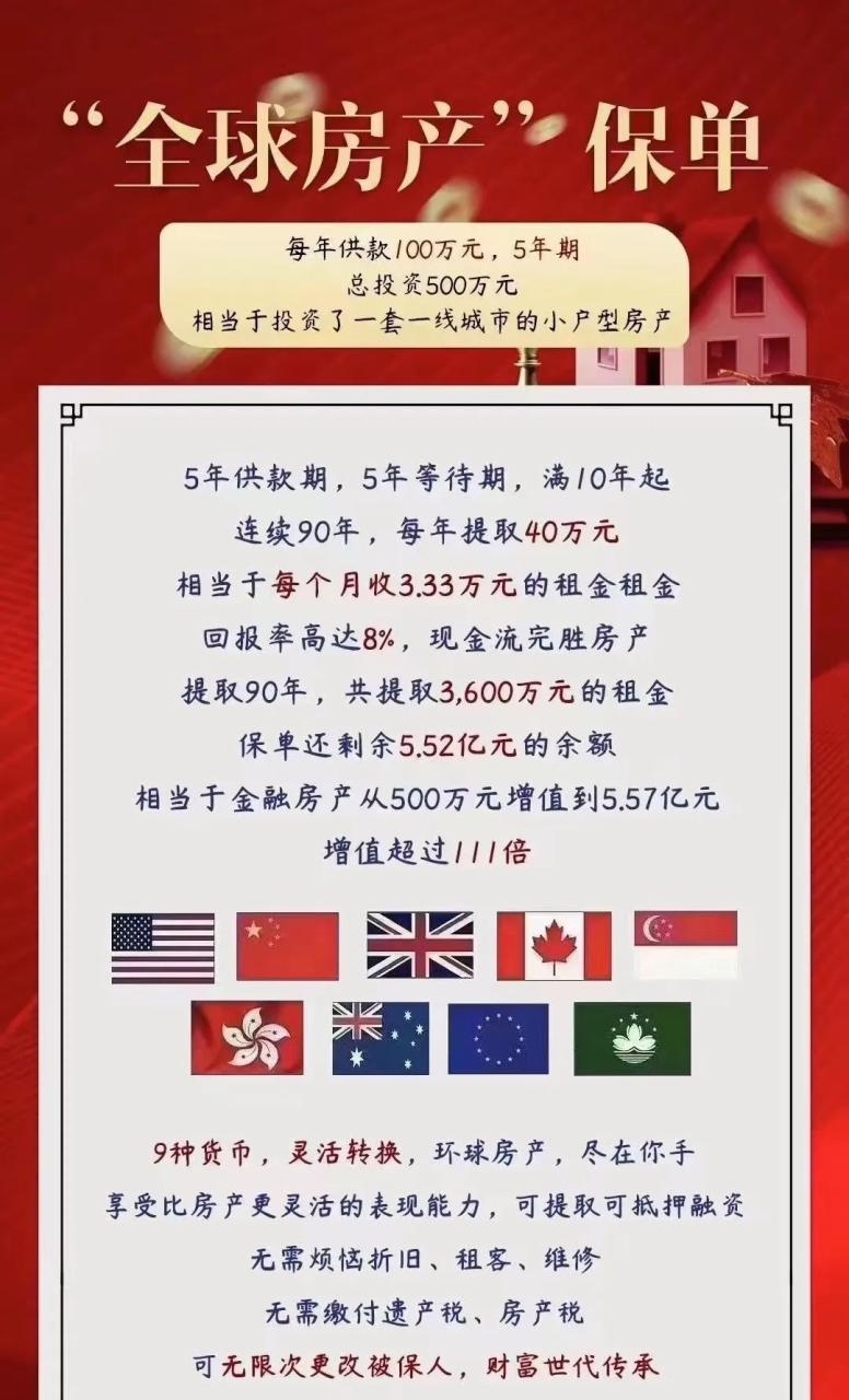 综上所述,这款这款“金融房产”无论是退保或提取红利、还是将来传承给下一代,这些程序上都不会跟“缴税”扯上关系;所以用来做为财富传承也是很好的选择。