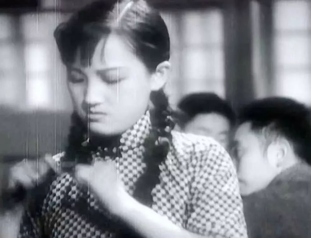拍这部戏时,周璇正是二八年华,她将一头青丝绑在脑后,身穿掐腰黑白格旗袍,斜瞥一眼便初具风情。美人轻咬手绢,充斥着老式黑白色调也难掩的娇俏。