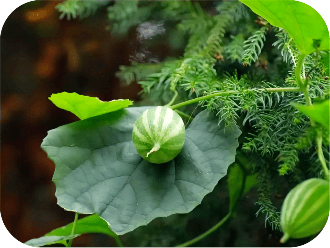 少时不知事,对自然中的植物都充满好奇。看到这小小的瓜,便总要趁着大人不注意的时候,偷摘一颗塞到嘴里,也不管它到底能不能食用。直到涩的自己又从口中吐出,再挨几句大人的唠叨。