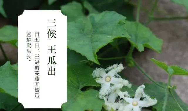 王瓜在此时开始结出小果。到夏季结束后,它会成熟由青色变成赤红色,化身成圣女果一般的样子。古人说这是因它感知到了阳气旺盛的缘故,也是植物向夏日季节的一场致敬。