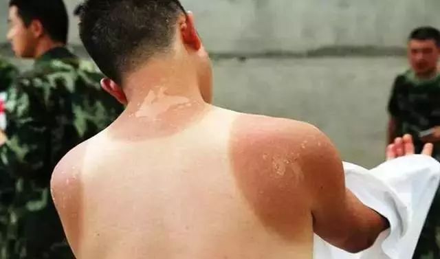 抗洪现场,一位士兵脱下了已经汗湿了无数次的短袖,除了衣服盖住的地方,士兵身上的其他地方都已经被晒脱好几层皮了,光看着就让人揪心。