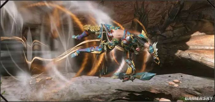 另外,《怪物猎人OL》中加入了一个全新的奥义系统,在某种意义上来说,OL的奥义直接催生了后来《怪物猎人X》中狩技等新系统的出现,不过这就是后话了。在最初版本的《怪物猎人OL》中,每种武器都有一个奥义槽,奥义槽积蓄满后,可以释放一个演出效果爆表的奥义攻击。这些攻击往往能造成大量的伤害,能够瞬间给怪物造成硬直,扭转战局,而且这还是高手装逼耍帅的不二之选。