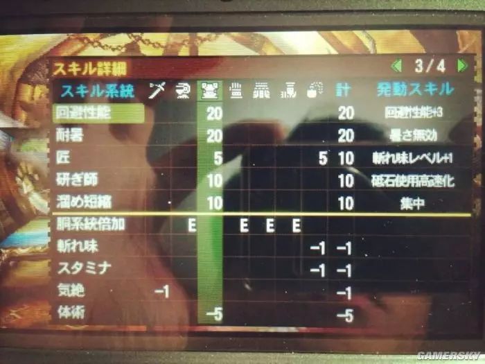 当然,除了对玩家自身的养成之外,《怪物猎人》中角色的养成系统也自成体系。这种对游戏角色的养成并不是靠无脑堆叠数字实现的,而是通过一套十分复杂的装备与技能点系统实现的。在这款游戏中,猎人自身没有任何技能和升级要素,只有装备才具备攻防数字和技能点。而且最重要的一点是,《怪物猎人》中的技能更多提供的是功能性加成,比如提升回避效率的回避性能,增加武器锋利度的匠。通过这些功能性大于数字价值的技能,能更好的让玩家感受到自身的成长,而不是随着装备的提升去无脑秒怪。
