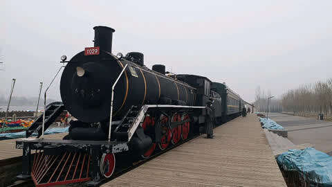 今天(9月5日)滹沱河,在滹沱河北岸、新元高速西侧,记者看到“石家庄站”四个大字和它前方的两节绿皮火车车厢,蒸汽式火车头的最前方“石家庄号”四个大字格外醒目。