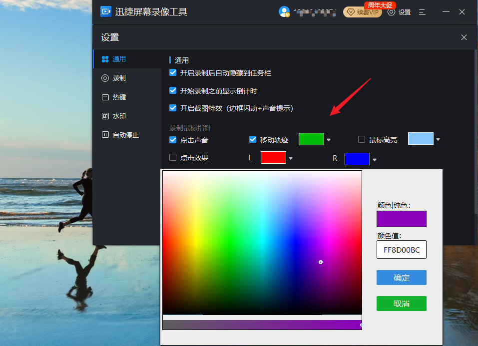 只要打开右上角的设置,勾选「录制鼠标指针」的「移动轨迹」。
