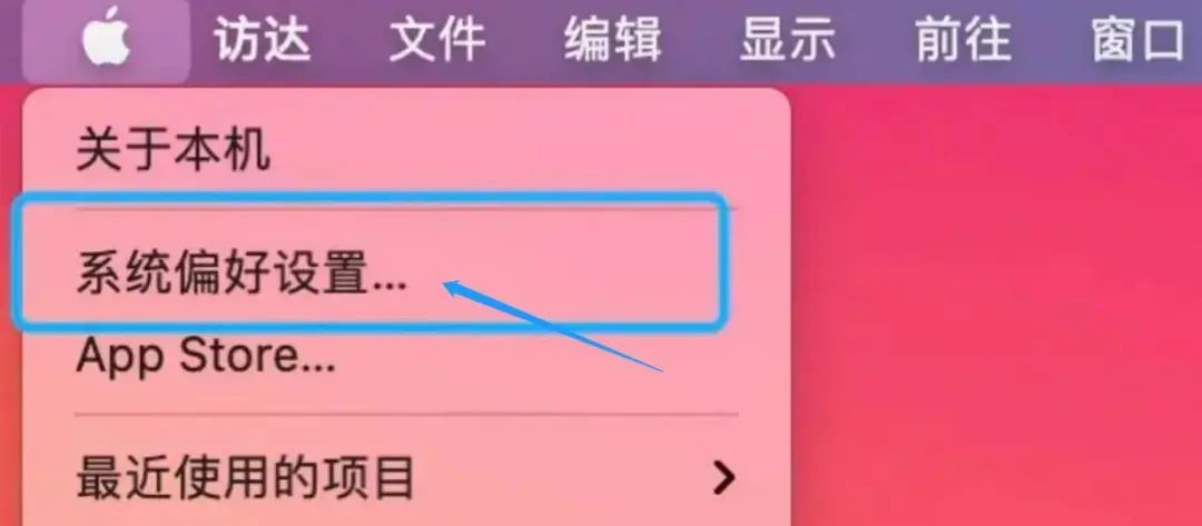2.在弹出的下拉列表中,点击系统偏好设置。