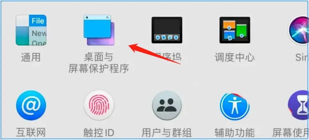 3.在系统偏好设置窗口中,点击桌面屏幕保护程序。
