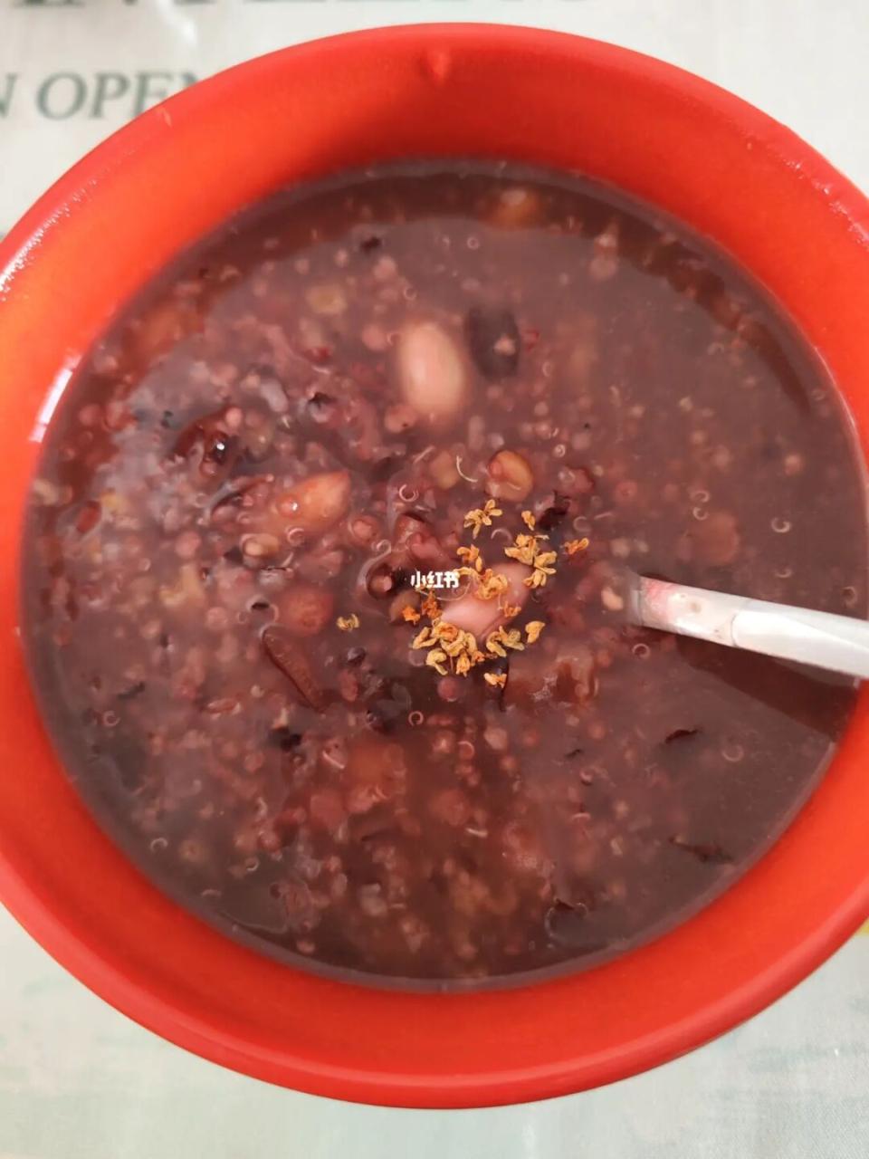 午夜才过,我的二舅爹爹(我父亲的二舅父)就开始作业,搬出擦得锃光大亮的大小铜锅两个,大的高一尺开外,口径约一尺。然后把预先分别泡过的五谷杂粮如小米、红豆、老鸡头、薏仁米,以及粥果如白果、栗子、红枣、桂圆肉之类,开始熬煮,不住地用长柄大勺搅动,防黏锅底。