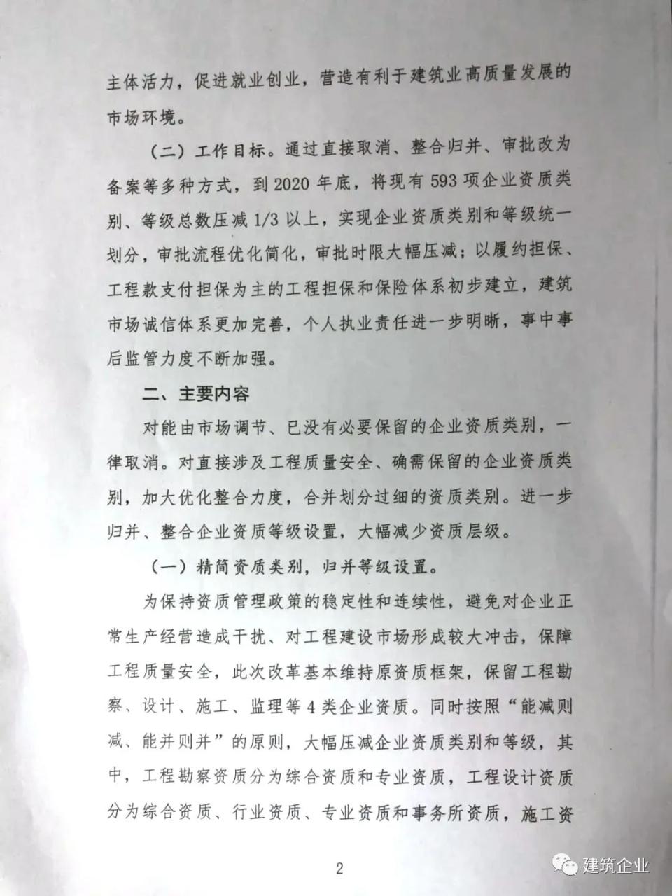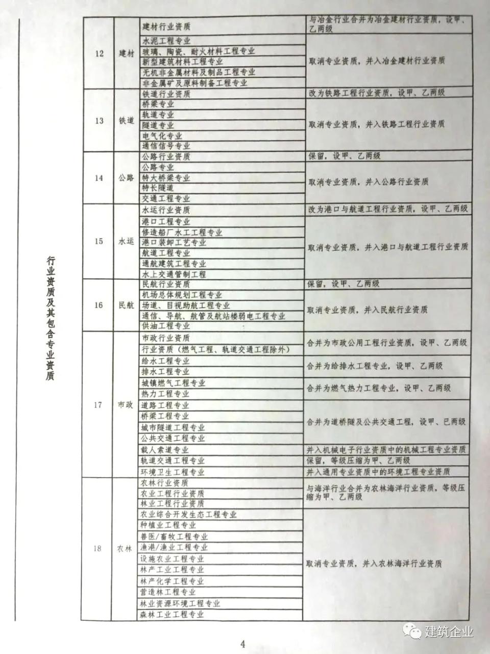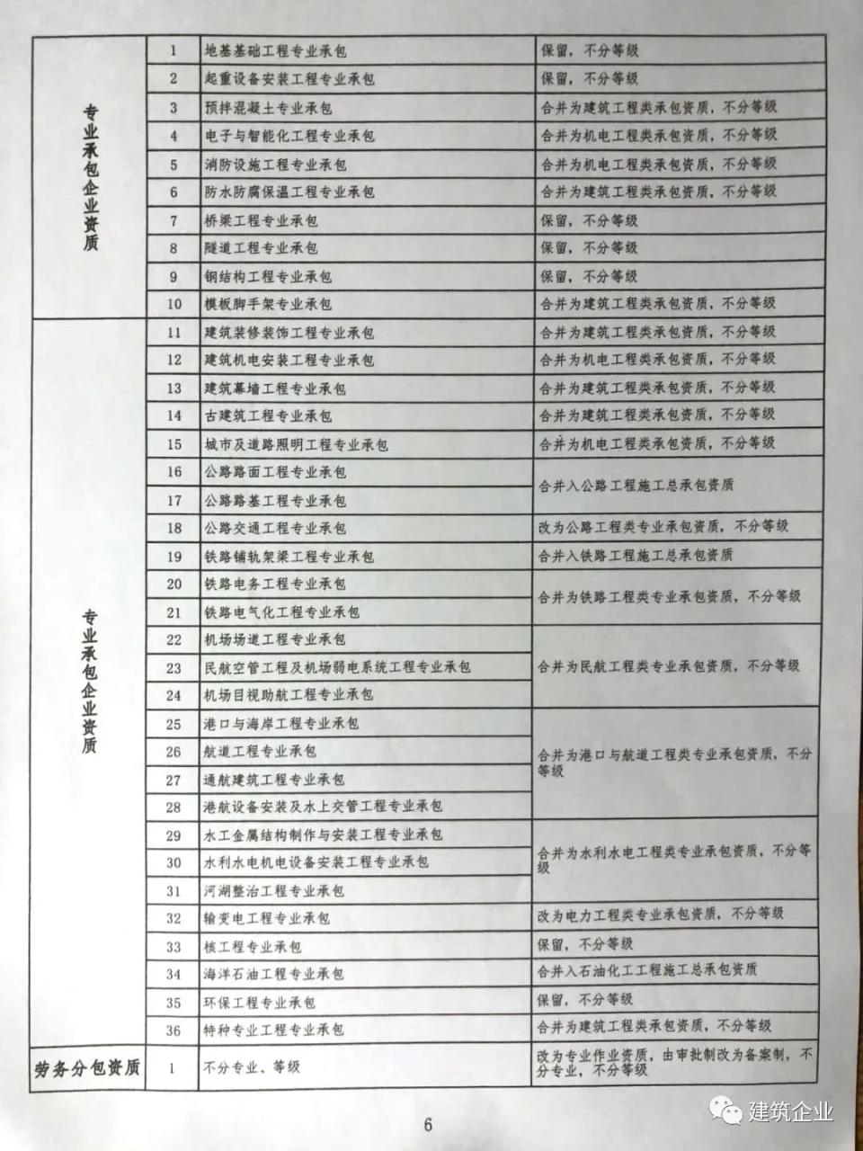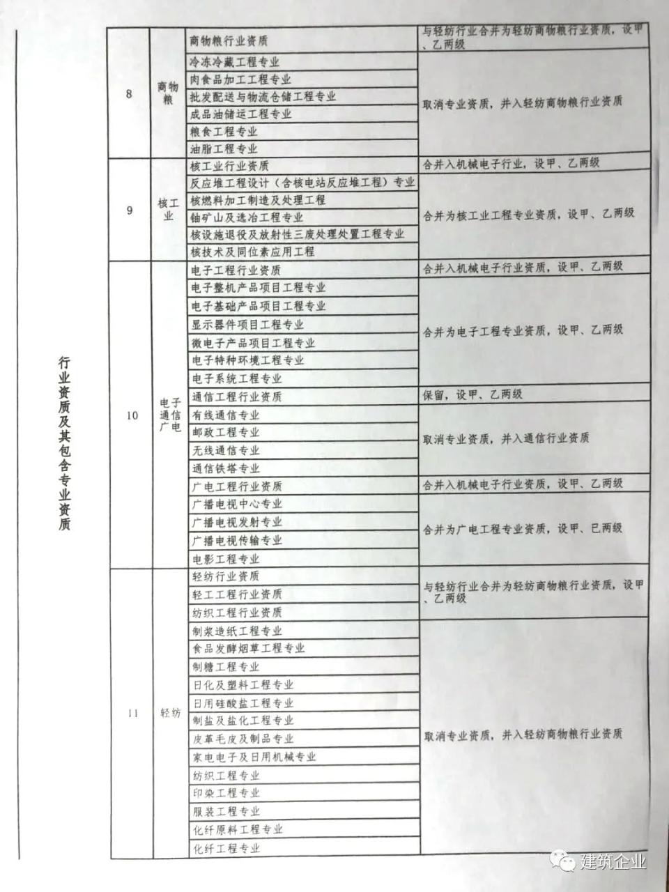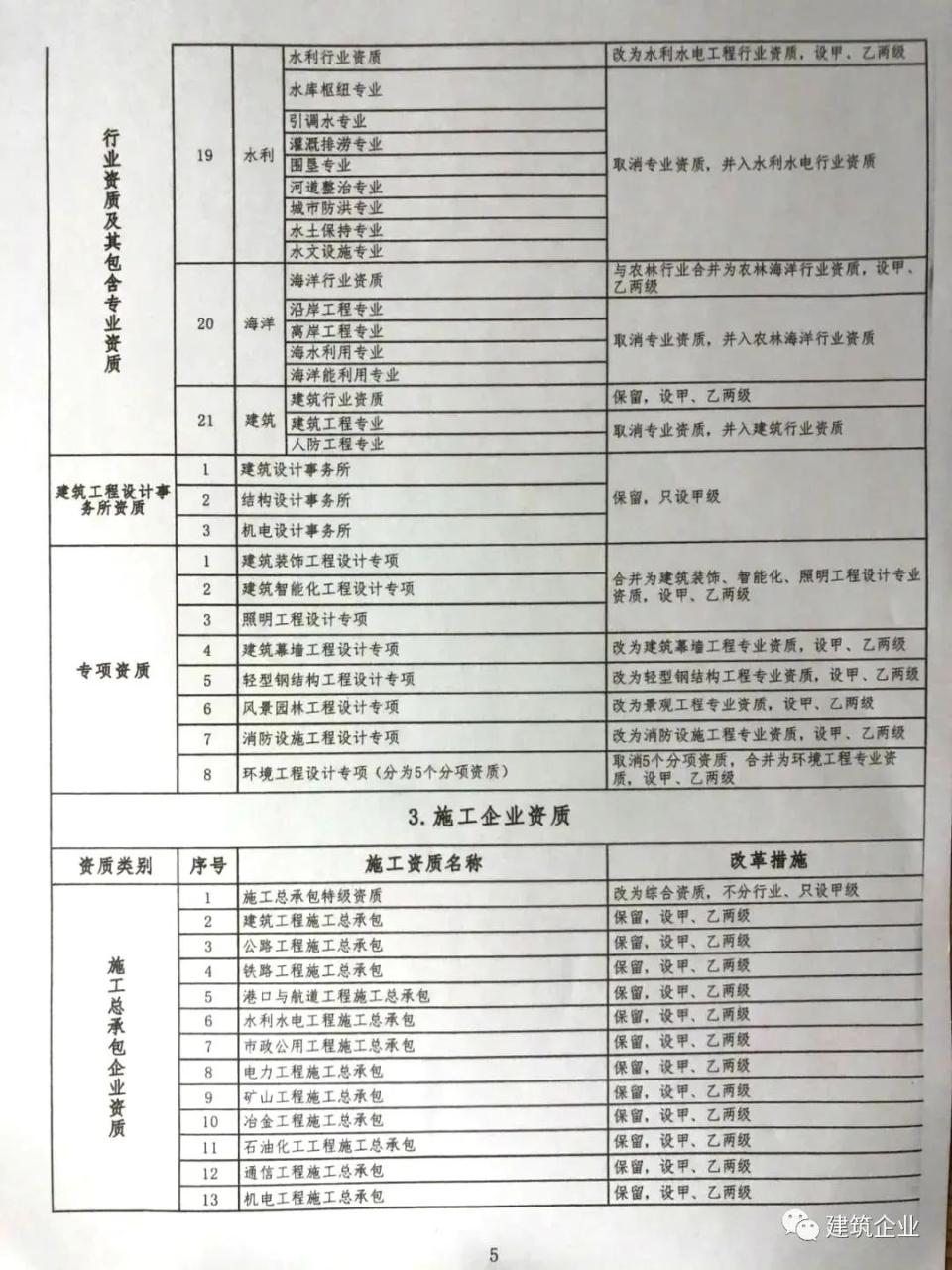 2、建筑总承包特级资质改为综合资质,不分行业、只设甲级,承揽项目范围无限扩大。
