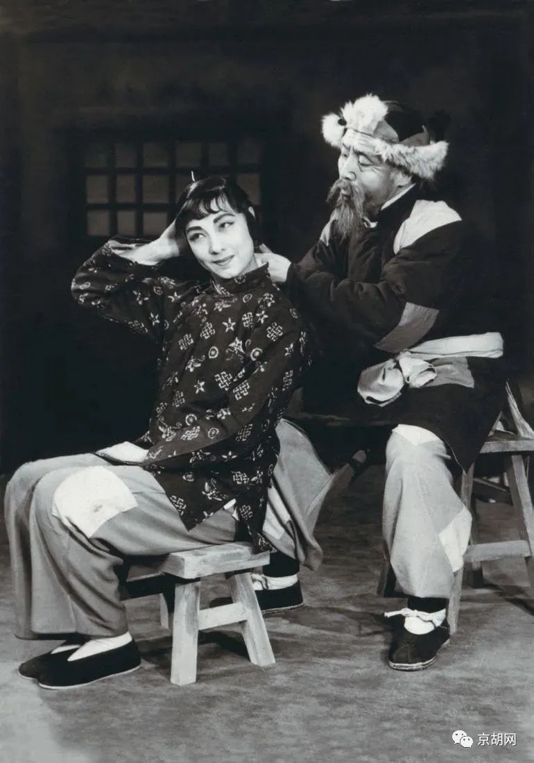 现代京剧《白毛女》中,杜近芳饰演喜儿,李少春饰演杨白劳