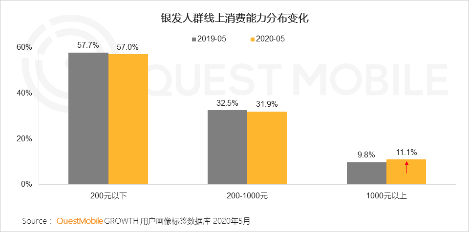 老年人精打细算的生活态度从来不因地域而改变,无论是生活在一二线城市还是三线以下的城市,物美价廉的商品总能勾起老年群体的消费欲望。QM数据显示,中国银发一族仅在消费200元以下产品时更占上风,消费理念以平价及性价比为主。