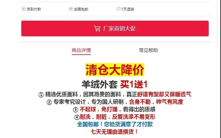 此前就有人向浙江省临海市市场监督管理局投诉称,其父母在APP上浏览新闻时被平台上的二类电商卖家欺骗,收到的低价羊绒外套不仅没有买一送一,所谓的羊绒材质到手后也变成抓绒(聚酯纤维)。由于此二类电商无客服平台,电话联系商家又被拉黑,商家承诺的七天无理由退换货也成为泡影。在监管部门的介入下,投放商品广告的贸易公司才受到处罚。