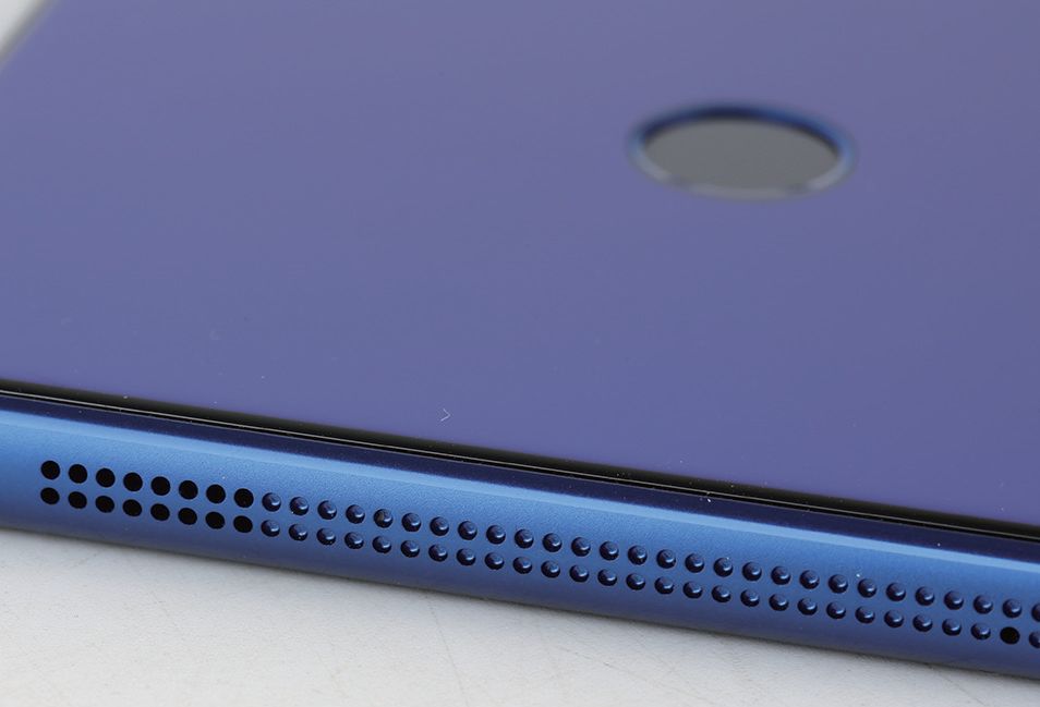 荣耀Note10的机身背面采用横置布局,除了中轴线偏上处的指纹识别键和左上角分离式双摄外,其他文字均由水平改为垂直设计,布局方面看上去让人觉得熟悉又陌生。当然,荣耀Note10与此前荣耀V10以及荣耀10最大的不同还是在于背面玻璃上,荣耀Note10采用了一块加装了金属氧化物纳米镀层的2.5D玻璃,我们手中的蓝色版本效果尤其惊艳,宝蓝色的玻璃后盖甚至可以化身为一面镜子,巨大且光滑的背面就算女生补妆也相当够用。