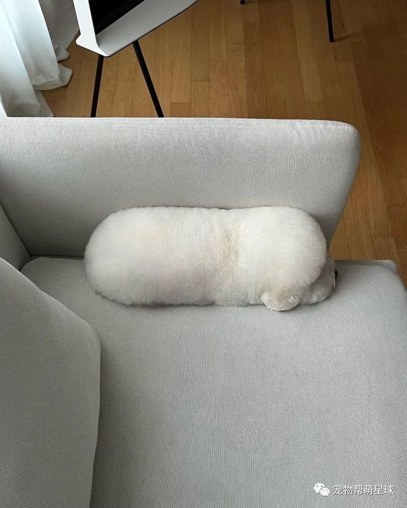 它行动稳健,很少撒欢拆家狗狗图片,还经常有样学样地以人类姿势稳坐在沙发上。