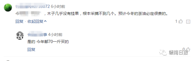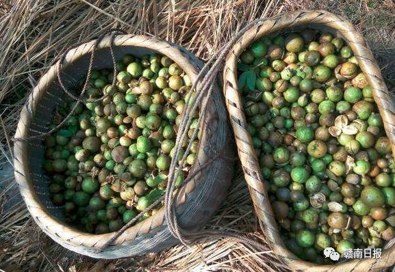 秋天是丰收的季节,也是收货成果的时刻,老表们说去年和今年野生的“木子”都不是很有产量,预计今年,赣南茶油的价格将比往年高。