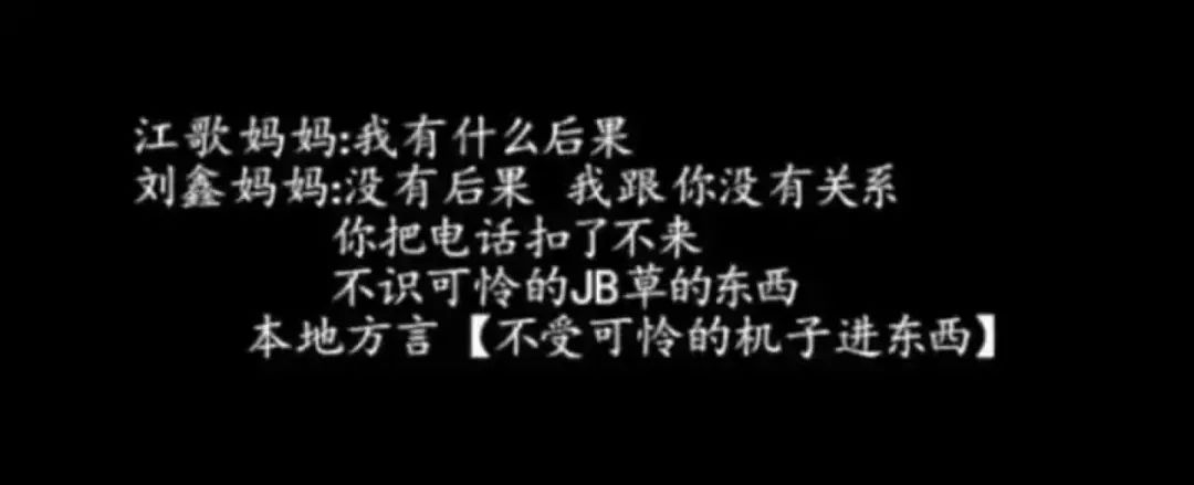 刘鑫妈妈甚至打来电话飙脏话,吼骂江歌妈妈:“你闺女叫人家杀了,你去找杀人犯,别找着俺!是她命短!”