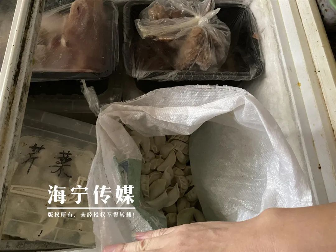 执法人员打开该店的冰柜发现有食物裸露存放,还有用麻袋直接存放食物的现象,执法人员告诉店主,冰箱里的食物都要用保鲜膜或者盖子覆盖保存,这些都不符合规定,应立即整改。