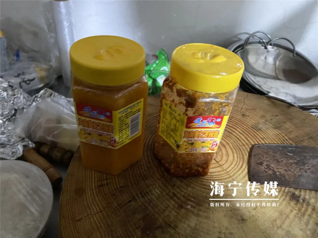 在二楼的厨房间,整体环境还算干净整洁,但有一垃圾桶未加盖,检查加工辅料过程中,执法人员发现其中一罐名叫“海南黄灯笼辣酱”瓶中,存放的却是另一种牌子的辣酱。执法人员指出,每样食物与包装瓶都要一一对应,这样食品的保质期等要素才能得知。