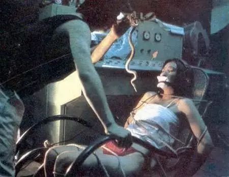 盗墓片更是可以堂而皇之地让尸体搬出来吓人。《夜盗珍妃墓》中那个脸色如白无常,手指如鸡爪的珍妃一度引发了观众的议论:野史上不是说珍妃是被扔井里淹死的吗?水浸的话,应该是又白又胖才是。这是考据癖的疑虑,完全不妨碍古墓里的珍妃把观众吓得魂飞魄散。《黑楼孤魂》中还有人死、咽气的脸部特写,并用两束拙劣的激光表示灵魂出窍。如今看起来喜感十足。