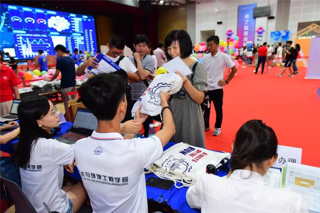 “机电的娃,跟我走”“计算机科学与技术学院”……学长学姐扛着各自学院的报到指示牌,把新生们迎到学院报到处。迎新大厅内,各学院都拿出十八般武艺“秀肌肉”:会跳舞的机器人、曾登上春晚舞台的“五彩凤凰”、学生亲手搭建的“迎新木亭”、刻有新生名字的专属可乐、师生照片拼成的照片墙、印有学院名称的T恤、院长签名的礼品袋、学长学姐们的一对一指引……爱如潮水,新生们陷入了各种“宠溺”中……