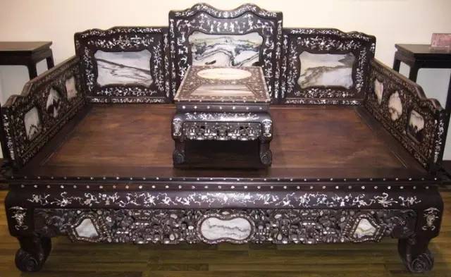 没有见到九围屏风,是不是以前的九五之尊的说法呢?这十一围屏+镶嵌理石,层次感觉得不错,用回字纹腿感觉稍稍稳重。