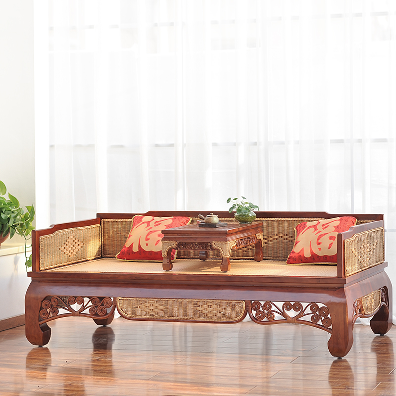 因罗汉床兼具卧床和坐具的双重功能,所以可将罗汉床摆放在卧室中,既可以双人端坐其上,下棋交谈,又可一人躺卧其中,享受轻松时光。