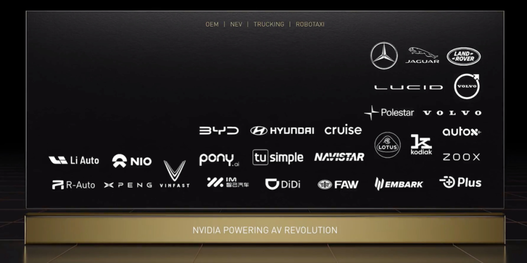 到了Orin的发布,英伟达在自动驾驶领域开始大放异彩,几乎囊括了所有主流的汽车制造商和自动驾驶公司。