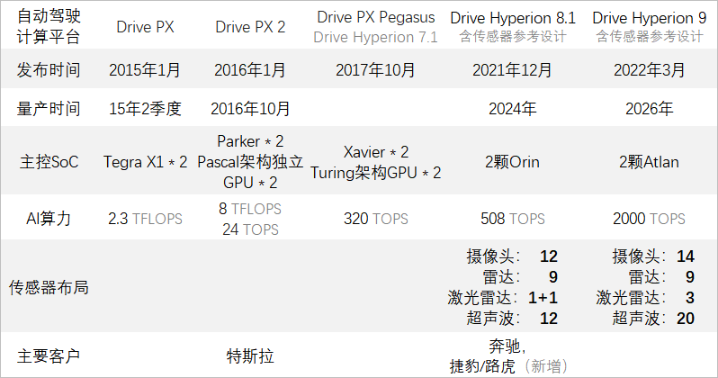 除了自动驾驶芯片,英伟达的历代自动驾驶计算平台也颇具看点。