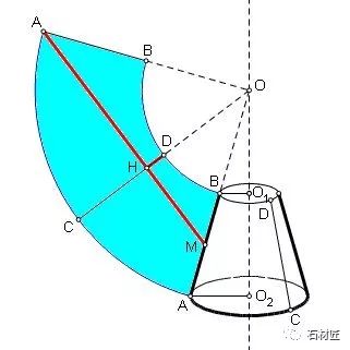 注意这个周长是整个圆的周长,我要求其中一段,就要首先虚拟一个A夹角(圆心),目前已知道这个虚拟的三角形的三条边为15777和8900和8900圆台侧面积公式,根据三角形的余玄定理求出这个夹角度数