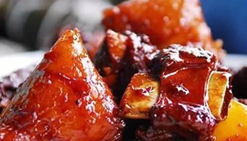 9.45分钟后,看看排骨汤汁大约只剩三分之一,放入粽子,继续小火焖15分钟左右。中间注意翻面肉粽子的做法和配料,让粽子各面都能浸到汤汁。