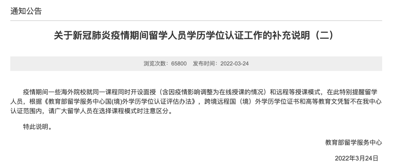 1. 针对部分海外院校在疫情防控期采取延长注册入学时间、开设在线课程、灵活安排毕业答辩等方式协助我国留学人员完成学业的举措,我中心表示理解与支持。
