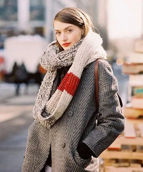 用毛衣做围巾就更考验人了,搭配不好就会让人误以为你刚赶完火车…
