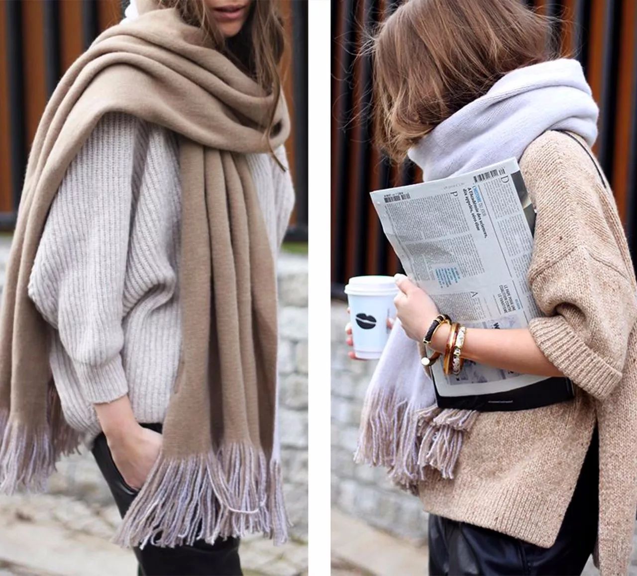 姐还是建议大家秋冬常备一条羊毛或羊绒成分为主的围巾,因为它最能御寒,同时柔软厚实透气性好。
