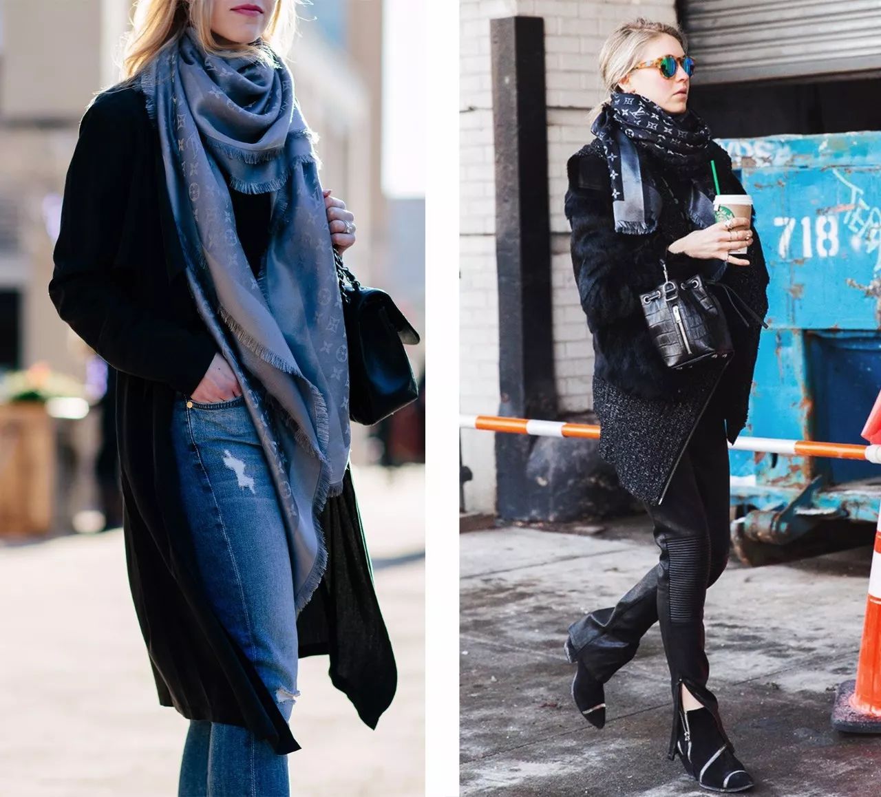 如果说Logomania是新爆款,那Monogram Denim就是LV围巾里的“元老”款了。几年前它就在街拍中频频出现,大表姐刘雯也是它的忠实粉丝。