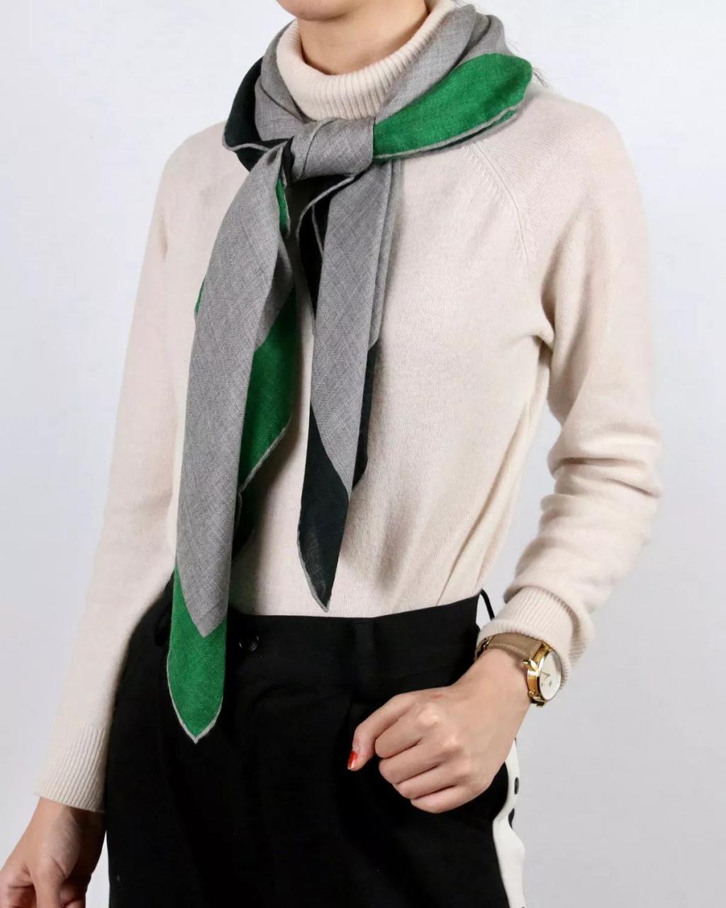 爱马仕的丝巾是必入经典,他家的围巾同样如此。姐最近就喜欢上了一条Hermes拼色围巾,它由浅灰、草绿和碳黑三种颜色组成,优雅又别致。