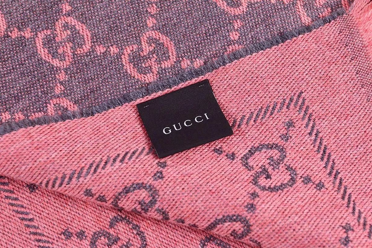 这款围巾是纯羊毛质地,厚度比较薄,触感在羊毛围巾里算是特别柔软亲肤的。灰色底色配上粉红的GG图案,风格偏成熟,很耐看。