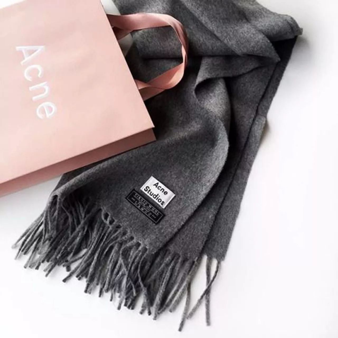 不过 if 姐注意到,除了最最基础的纯色围巾,今年Acne新出了不少带logo的超大号围巾。