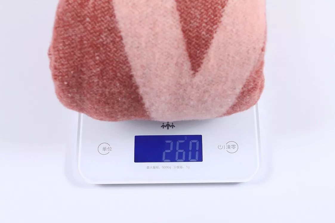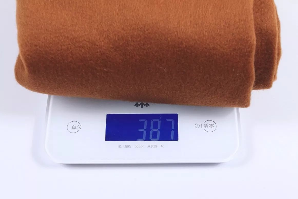这款围巾用料特别实在,拿在手里就比其他围巾更有分量感,重量有387克。