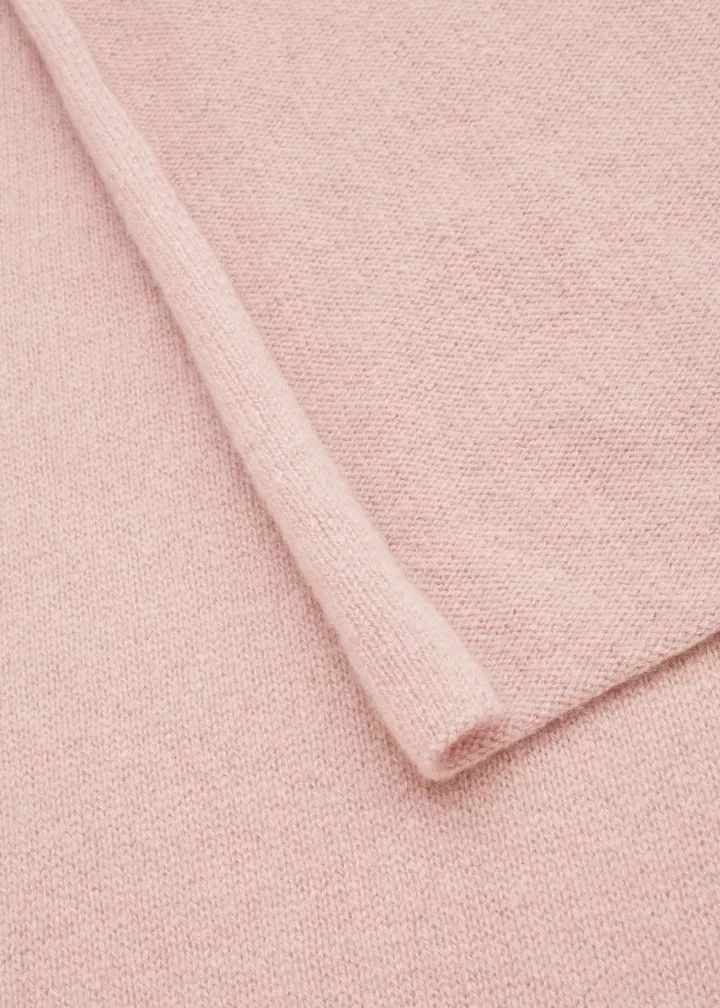 它由100%羊绒制成,手感柔软舒适,厚度适中,摸起来有微微的绒毛感。