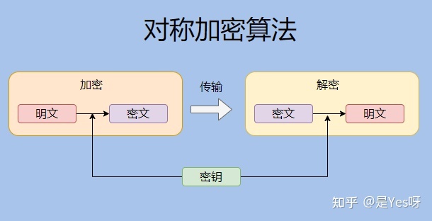 通过他们的对话我们知道 土匪在试探杨子荣的身份。当土匪说,天王盖地虎,我就必须说 宝塔镇河妖!也就是双方都知道 这段话是什么意思。翻译成程序员的话就是 双方都有加密的密钥。因此对称加密也可以说是秘密交易者的暗号。