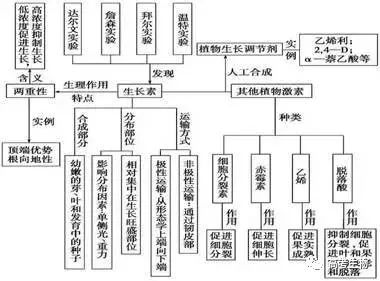 (1)生长素与细胞分裂素:植物的生长表现在细胞体积的增大和细胞数目的增多,生长素能促进细胞伸长,体积增大,使植株生长;而细胞分裂素则是促进细胞分裂,使植株的细胞数目增多,从而促进植物生长。