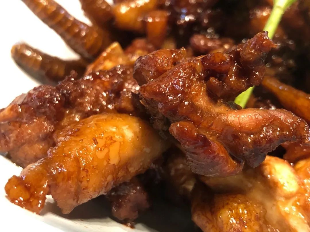 ▼ 红烧土鸡。 结结实实烧了两个小时,肉质相当不错啊!平时烧养殖土鸡,最多40分钟,所以从时间上大家可以参考藕带,如果是纯土鸡拿来红烧,起码要一个半小时以上。参考菜谱: