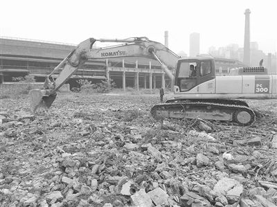 重庆市大渡口区重钢型钢厂原址,挖掘机正在作业,以便进行土壤修复工作。