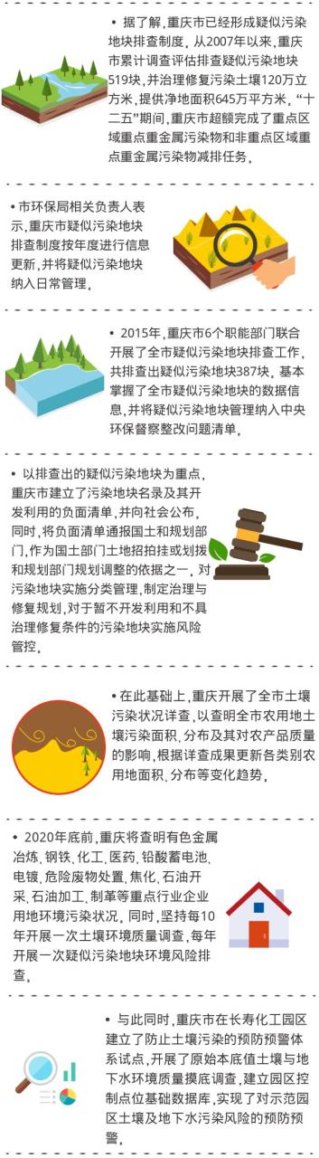 从2016年国务院印发《土壤污染防治行动计划》(以下简称“土十条”)以来,重庆市积极行动,出台《重庆市贯彻落实土壤污染防治行动计划工作方案》,提出了今后一个时期土壤污染防治工作的时间表、路线图和任务书。重庆市政府还与区(县)政府签订了责任书土壤污染源种类,将任务层层分解到位。