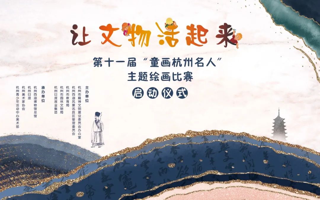 在启动仪式上,杭州西湖风景名胜区管委会副主任陈林;杭州市教育局副局长蒋锋;杭州日报编委、城市新闻中心主任李军 ;杭州市园林文物局文物处处长陈军等主办单位领导共同执行了具有特殊意义的注水仪式,揭晓了今年“童画杭州名人”的创作主题——“让文物活起来”。