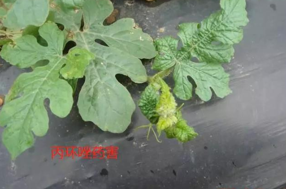 丙环唑:高温下不稳定,残效期在1个月左右,对某些双子叶作物和葡萄、苹果的个别品种也会造成药害,丙环唑叶面喷施时常见的药害症状是幼嫩组织硬化、发脆、易折、叶片变厚、叶色变深、植株生长滞缓(一般不会造成生长停止)、矮化、组织坏死、褪绿、穿孔等,种子处理会延缓子叶萌芽。