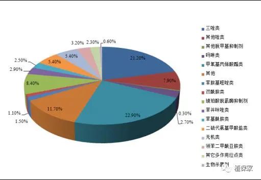 三唑类杀菌剂种类很多,国内推广使用的有20多种,包括:苯醚甲环唑、戊唑醇、丙环唑、三唑酮、腈菌唑、已唑醇、氟硅唑、烯唑醇、氟环唑、三唑醇、四氟醚唑、亚胺唑、戊菌唑、粉唑醇、种菌唑、腈苯唑、灭菌唑、环丙唑醇、丙硫菌唑、叶菌唑、联苯三唑醇共21种,其他的(氟喹唑、硅氟唑、糠菌唑等)暂时没在我国登记。