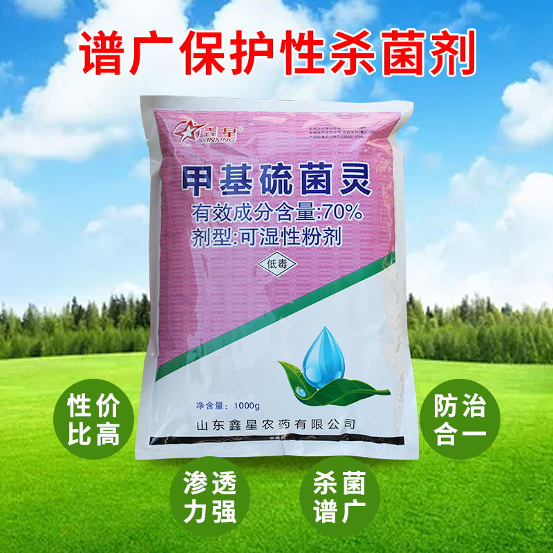 1.甲基硫菌灵为广谱、内吸杀菌剂,具有向植株顶部传导的功能,对多种蔬菜及果树有较好的预防保护和治疗作用,对叶螨和病原线虫有抑制作用。