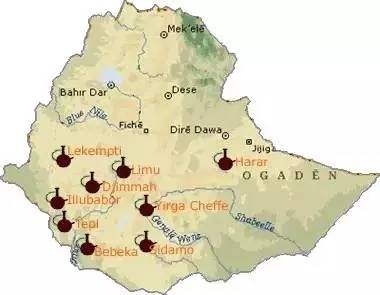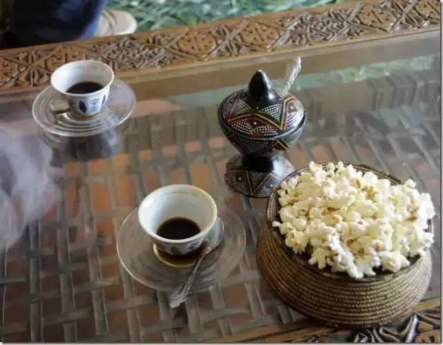 至今,许多埃塞俄比亚家庭仍保留着日常咖啡庆典的仪式,具有对风土最直接和充分的表达。咖啡是埃塞人生活的一部分。无论是在最偏远的丹纳基尔沙漠,还是在东非大裂谷深处的阿瓦萨湖畔;无论是在喧嚣嘈杂的城市,还是在自然恬静的乡村,你总能闻到咖啡的香味,并寻香而去,停留品味。清晨咖啡的故乡,漫步亚的斯亚贝巴的街头咖啡的故乡,四处弥漫着咖啡豆与香料的特有香味。街边小店的女主人会对你说“Buna-BunaTetu(来杯咖啡吧!)”,招呼你进店品尝。简单的小咖啡屋里保留了当地的民俗特色,窗棂上悬挂的羊皮画,桌子上摆放的石头杯垫和小碟,新鲜的香草植物,都充满了浓郁的非洲特色。