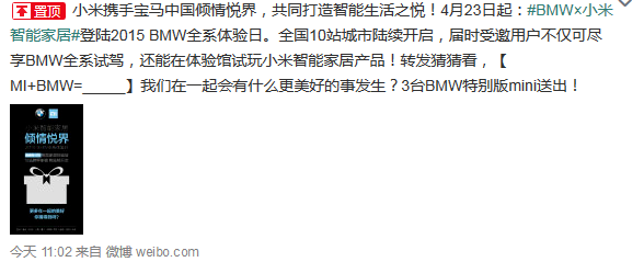 六年前,小米官微宣布,将与宝马展开跨界合作,以“店中店”的形式在宝马展馆中展示小米智能家居产品,这项合作开启了小米进军汽车行业的节点。